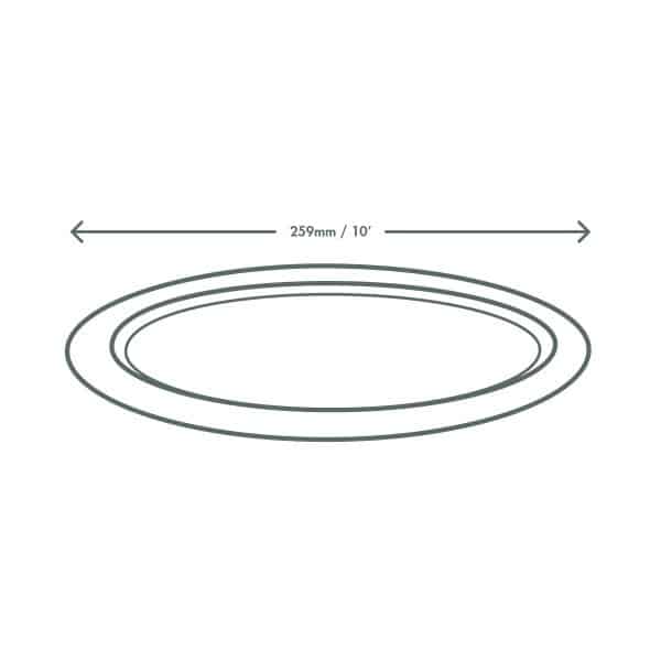 Stylish oval plate. Stronger than paper and polystyrene. Great for hot or cold, and sturdy enough to load up with food. Our moulded fibre uses reclaimed natural materials such as sugarcane, bamboo or wood pulp. Sleek white, embossed with Vegware. Award-winning quality by Vegware, made from plants. Made from recyclable materials.