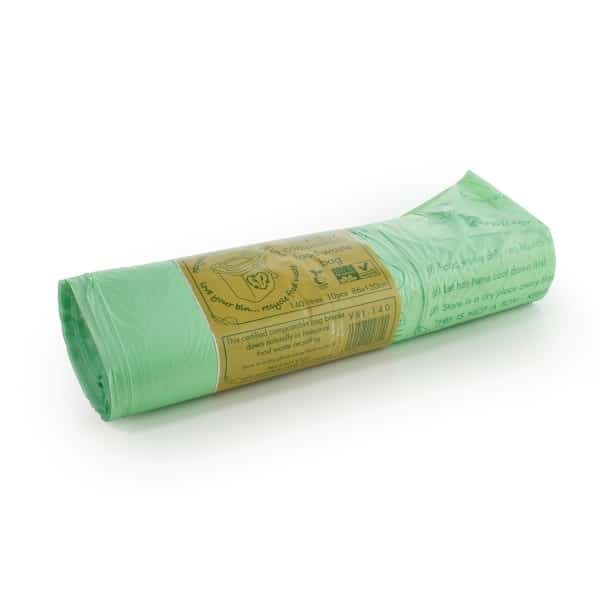 Certified compostable food waste bin liner – the only way to truly Close the Loop. Breathable film keeps food waste cooler and drier, reducing odour. Proven barrier to bacteria, viruses, spores, and mould. For lining external wheelie bins collecting used Vegware and food waste (use smaller sizes for pure food waste). Made responsibly in Europe from Mater-Bi, a plant material made from vegetable oils and thistle starch. Pale green with a Vegware print. Award-winning quality by Vegware, made from plants. Designed for home or industrial composting.