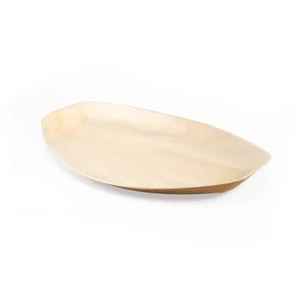Palm serving platter for the ultimate in chic tableware. Premium feel, sturdy and practical. Great for a huge variety of hot, wet, and oily foods. Lovely at special events. Fallen palm leaves, simply pressed into shape. Unbleached, natural, and as unique as the leaves it is made of. Award-winning quality by Vegware, made from plants. Commercially compostable where accepted.