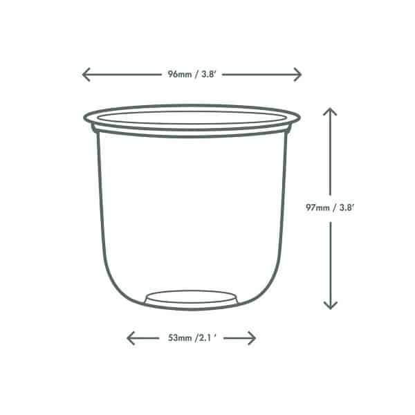 Sturdy round pots. Fits Vegware’s 3oz / 90ml insert for a food combo and 96-Series lids for food on the go. Perfect for granola and yoghurt, mixed salads or cold desserts. Made from PLA, a renewable material made from plants. Clear for visibility. On-pack eco messaging in green and Vegware’s Green Leaf tab showcase their compostable credentials. Award-winning quality by Vegware, made from plants. Commercially compostable where accepted.