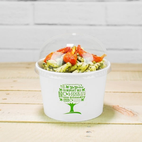 Versatile, leak-proof, sturdy round tub. Fits Vegware’s 115-Series lids. For hot soups, pasta, noodles, porridge or one-pot meals, or for cold salads or ice cream. Sustainably-sourced board with a plant-based PLA lining. Part of the Green Tree collection. Award-winning quality by Vegware, made from plants. Designed for industrial composting, made from recyclable materials.