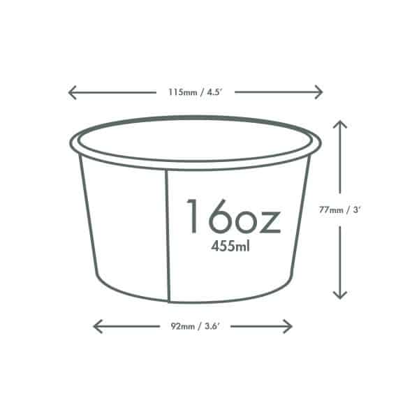 Versatile, leak-proof, sturdy round tub. Fits Vegware’s 115-Series lids. For hot soups, pasta, noodles, porridge or one-pot meals, or for cold salads or ice cream. Sustainably-sourced board with a plant-based PLA lining. Crisp white, with Vegware messaging in green. Award-winning quality by Vegware, made from plants. Designed for industrial composting, made from recyclable materials.