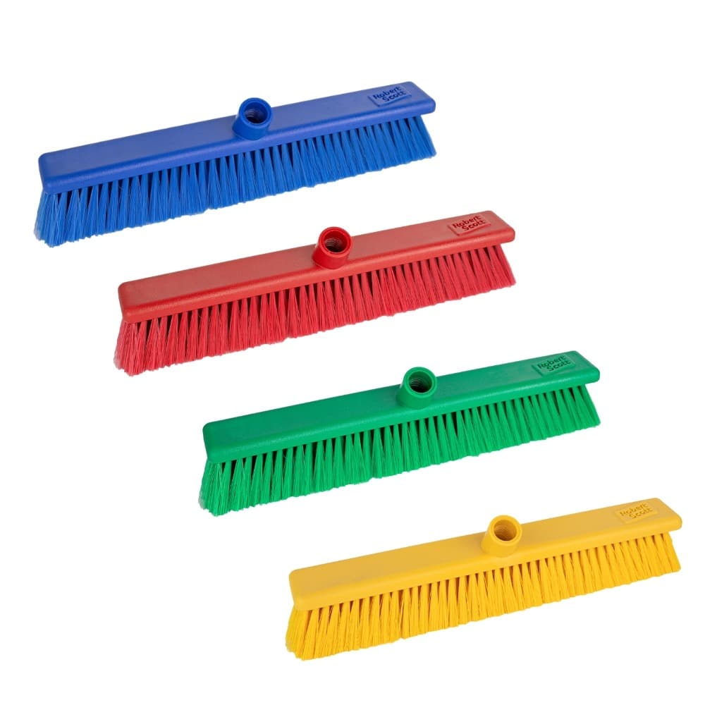 Polypropylene broom head with stiff bristles, suitable for both indoor and outdoor sweeping.