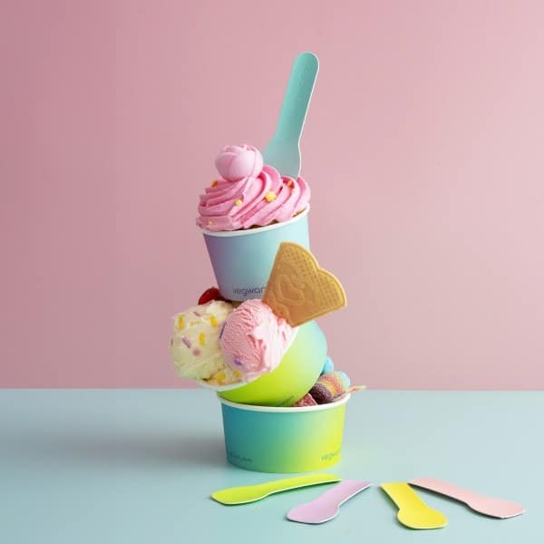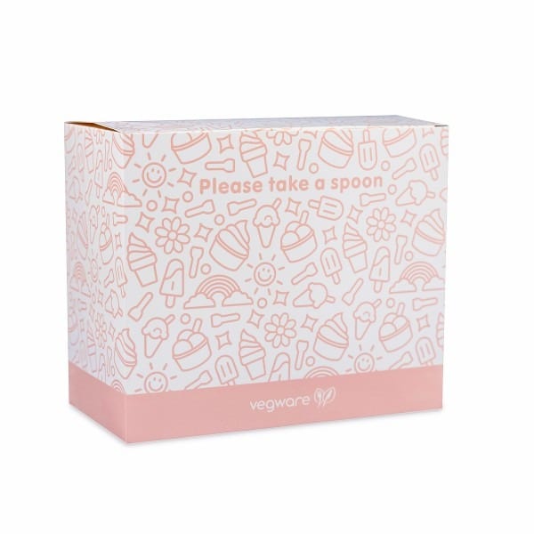 Inject some fun into your foodservice with our tutti frutti ice cream spoons. Perfect for ice cream, sorbets, yoghurts and more. Sustainably-sourced paper, pressed into shape with a water-based coating with a paper wrap. Each pack contains all colours: pink, purple, blue, green and yellow. Rounded edges for a superior eating experience with Vegware embossing on the handle. Award-winning quality by Vegware, made from plants. Designed for industrial composting, made from recyclable materials.