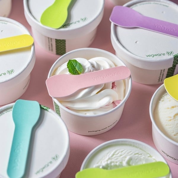 Inject some fun into your foodservice with our tutti frutti ice cream spoons. Perfect for ice cream, sorbets, yoghurts and more. Sustainably-sourced paper pressed into shape with a water-based coating. Each contains all colours: pink, purple, blue, green and yellow. Rounded edges for a superior eating experience with Vegware embossing on the handle. Award-winning quality by Vegware, made from plants. Designed for industrial composting, made from recyclable materials.