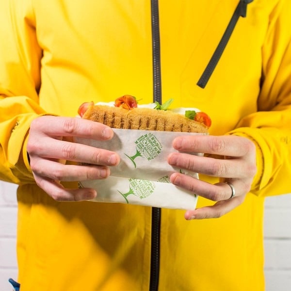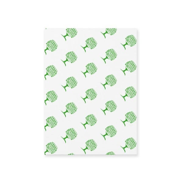 Versatile greaseproof sheet with stylish design. For wrapping all sorts of hot or cold deli treats, like wraps or gourmet sandwiches. Also ideal under a pastry display or for lining trays. Made from 34gsm chlorine-free paper from a sustainable European source. Part of the Green Tree collection. Award-winning quality by Vegware, made from plants. Commercially compostable where accepted.