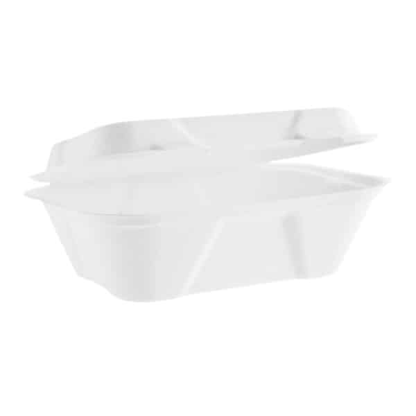 Practical and stylish clamshell, in Vegware Nourish moulded fibre. Doesn’t trap condensation, so hot food stays crispy. For hot or cold food to go – street food, fried rice, salads, or even sweet treats. Made from Vegware Nourish moulded fibre with no added PFAS. Our moulded fibre uses reclaimed natural material such as sugarcane, bamboo or wood pulp. Stylish white. Award-winning quality by Vegware, made from plants. Designed for home or industrial composting, made from recyclable materials.