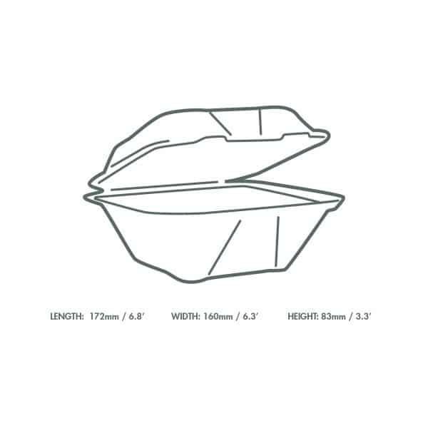 Practical and stylish burger clamshell, in Vegware Nourish moulded fibre. Doesn’t trap condensation so your burger bun won’t go soggy. The lid and base are equal depth, so when open form two trays. Perfect for hot or cold food to go but – you guessed it – especially burgers. Made from Vegware Nourish moulded fibre with no added PFAS. Our moulded fibre uses reclaimed natural material such as sugarcane, bamboo or wood pulp. White in colour for a fresh and bright look. Award-winning quality by Vegware, made from plants. Designed for home or industrial composting, made from recyclable materials.