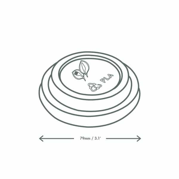 Sip-through lid for Vegware’s 79-Series hot cups. A lid for hot coffees or teas to go. Point the ‘seam here’ to the inner cup seam. Made from CPLA, a renewable material made from plants. Off-white colour, embossed with Vegware messaging. Award-winning quality by Vegware, made from plants. Commercially compostable where accepted.