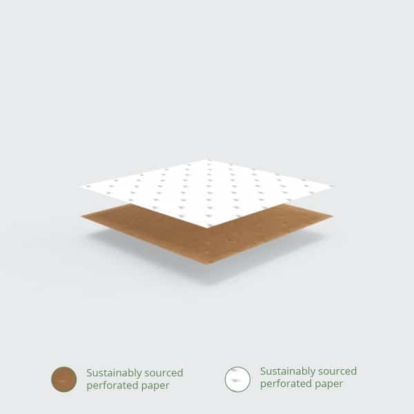 Perfect Therma presentation for paninis! Two layers of perforated paper retain heat but not condensation, so food stays hot and crispy. Suitable for hot cabinets up to 90°C. To eat simply tear along the dotted line to enjoy your hot treats tidily. Compatible with some panini grills. Great for paninis, wraps and toasted sandwiches. Sustainably-sourced paper. Brown colour with Vegware messaging in green. Award-winning quality by Vegware, made from plants. Made from recyclable materials.
