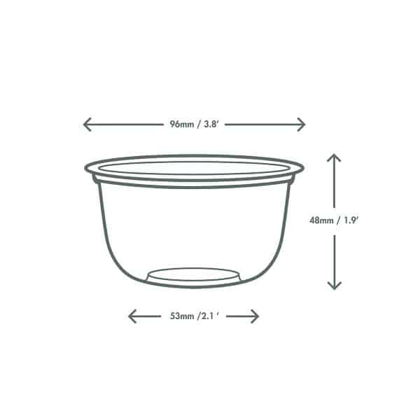 Sturdy round pots. Fits Vegware’s 3oz / 90ml insert for a food combo and 96-Series lids for food on the go. Perfect for granola and yoghurt, mixed salads or cold desserts. Made from PLA, a renewable material made from plants. Clear for visibility. On-pack messaging in green and Vegware’s Green Leaf tab showcase their compostable credentials. Award-winning quality by Vegware, made from plants. Commercially compostable where accepted.