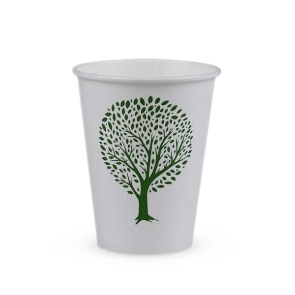 A home compostable 8oz single wall hot cup in our revamped Green Tree design! Fits Vegware’s 79-Series lids. The perfect number for your takeaway flat white. Sustainably-sourced board, lined with a water based lining. Crisp white board with tree in Vegware green. Award-winning quality, made from plants. Designed for home or industrial composting, recyclable in coffee cup recycling schemes – check your local options.