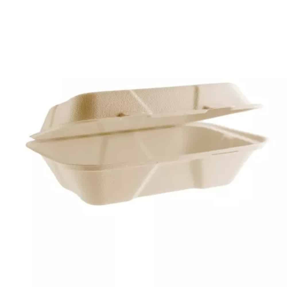 Practical and stylish clamshell, in Vegware Nourish moulded fibre. Doesn’t trap condensation, so hot food stays crispy. For hot or cold food to go – street food, fried rice, salads, or even sweet treats. Made from Vegware Nourish moulded fibre with no added PFAS. Our moulded fibre uses reclaimed natural material such as sugarcane, bamboo or wood pulp. Oatmeal colour for a natural look. Award-winning quality by Vegware, made from plants. Designed for home or industrial composting, made from recyclable materials.