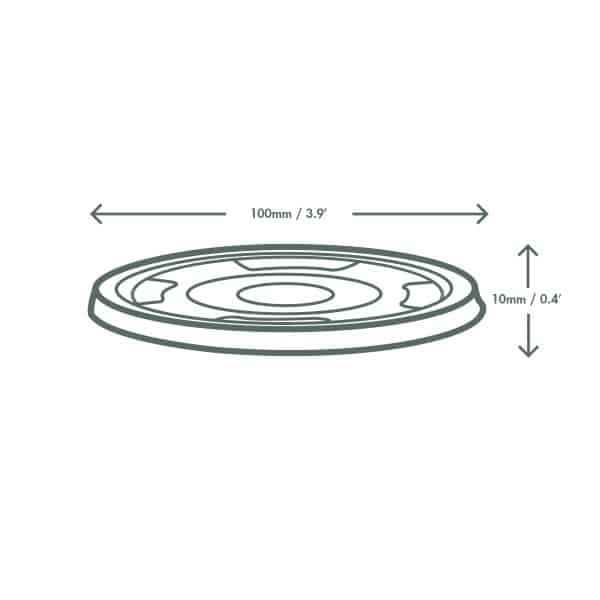 A flat lid for Vegware’s 96-Series cups, with no hole.A lid for serving cold desserts, crudités, salads, or drinks with no straw. Made from PLA, a renewable material made from plants. Clear for visibility. Award-winning quality by Vegware, made from plants. Commercially compostable where accepted.