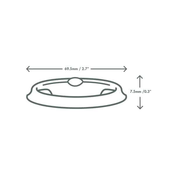 Here’s the lid for our fibre-based portion pots. The perfect cover for your condiments.Our moulded fibre uses reclaimed natural materials such as sugarcane, bamboo or wood pulp. Grooves on the top of the lid allow for greater stability when stacking the pots. Award-winning quality by Vegware, made from plants. Made from recyclable materials.