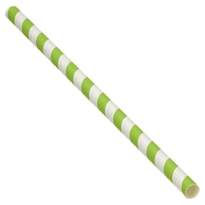 Lime Green & White Striped JUMBO SMOOTHIE Paper Straws 230mm (10mm diameter) (250)