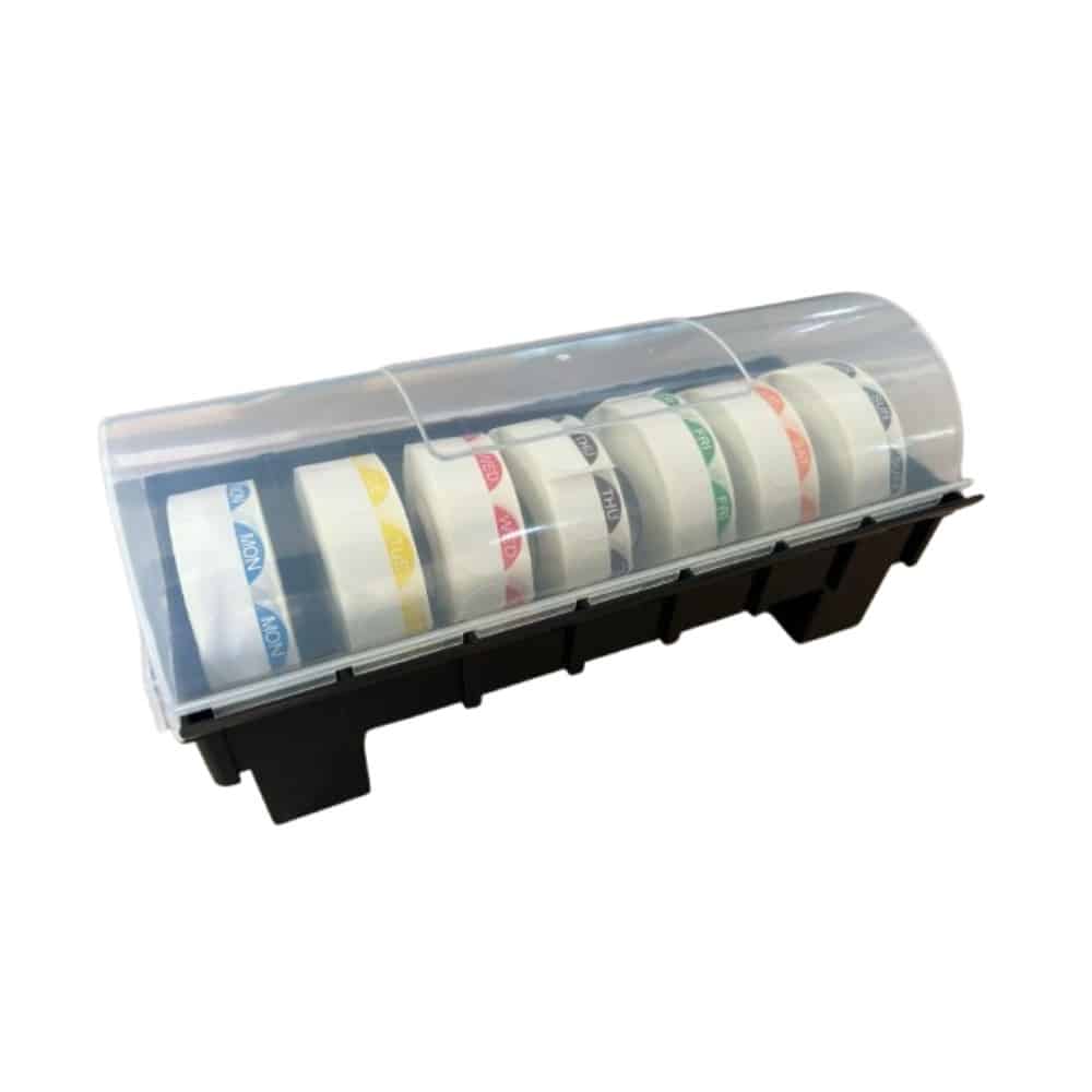 This high-quality plastic food label dispenser is designed to keep your kitchen organised and compliant with food safety regulations. It comes with 7 rolls of 1000 round food day labels, approved by EHO to help catering establishments meet Food Hygiene Legislation.