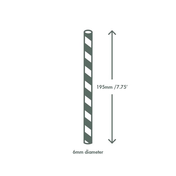 The premium quality paper straws you’ve been looking for. Sturdy and long lasting in cold drinks. Great for sipping cold soft drinks and sodas or adding some colour to cocktails.Made in the UK from sustainably-sourced paper. Striped 6mm straws in green and white with on-pack composting messaging.  Award-winning quality by Vegware, made from plants. Designed for industrial composting, made from recyclable materials.