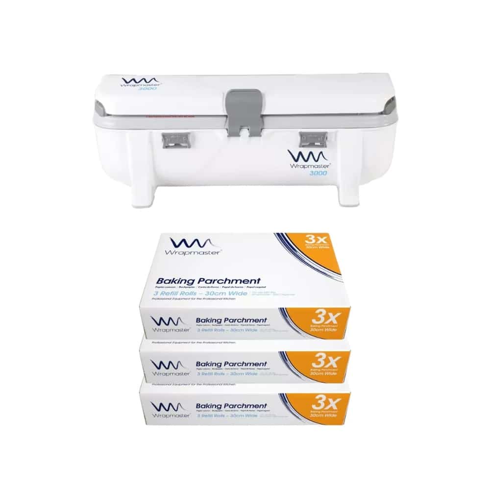 Wrapmaster Bundle – 3 x 3000 Baking Parchment Wrapmaster Refills with Dispenser